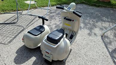 Vespa elettrica con sidecar per bambini, conservata come nuova, non presenta difetti.