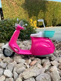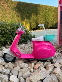 Vespa rosa di Barbie: le ruote funzionano per davvero, basta sollevare il cavalletto argentato e spingere lo scooter per iniziare a giocare.