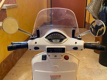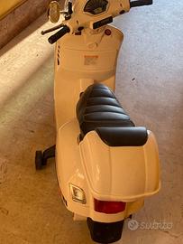 Vendo moto elettrica con licenza ufficiale Vespa! Ha un design compatto ed elegante con una piacevole combinazione di colori ed è adatta per bambini da 18 mesi in su. La seduta è confortevole e imbottita. Questa Vespa per bambini è dotata di clacson e fari per dare loro la sensazione di una vera esperienza di guida. Stimola la voglia dei tuoi bimbi di giocare all'aperto con questa moto elettrica! Caratteristiche • Design unico e realistico grazie alla licenza ufficiale Vespa • Funziona con un pedale di accelerazione • Adatta per bambini da 18-36 mesi • Massima stabilità e sicurezza grazie alle 4 ruote • Effetto di guida realistico grazie ai fari funzionanti e al clacson • Aiuta a sviluppare la coordinazione occhio-mano divertendosi • Ampio sedile imbottito • Batteria da 6V che offre una durata fino a 45 minuti • Estremamente facile da montare Dati tecnici • Colore: Bianco • Materiale: PP, Metallo • Dimensioni generali: 66.5L x 38P x 52Acm • Altezza sedile: 30cm • Alimentatore: 6V, 500MA • Batteria ricaricabile: 6V, 4Ah • Durata: fino a 45min con carica completa (a seconda dell'utilizzo) • Età consigliata: 18-36 mesi • Capacità di peso: 25kg Completa di cavo caricabatterie