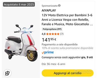 Vespa bambini elettrica bianca funzionante usata solo in casa