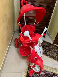 Vendo vespa triciclo come da foto usata solo due volte (e si evince anche dalle ruote che sono praticamente nuove) tenuto benissimo, con tutti gli accessori: cofanetto posteriore, parasole e riduttore seduta. Dotato anche di musica . pagato 89€ lo vendo 40€
