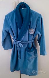 vestaglia in pile con collo a scialle, tasca e cintura; misura 6-8 anni