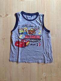Maglietta Champion viola, maglietta Blue Kids azzurra, canotta di Cars, calzoncini bianchi Blue Kids regolabili in vita. Condizioni ottime.