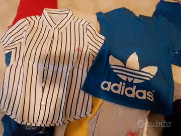 lotto bimbo 3/4 anni composto da 2 canottiere, una camicia Gianfranco Ferrè, una t-shirt Adidas, 3pantaloni lunghi di cotone, un pigiama corto, 7 pantaloncini corti tutto 20€ per chi acquista da me regalo anche qualcosa