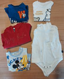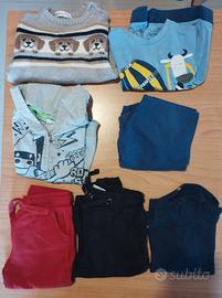 Pacco contenente vestiti per bambino 12/18 mesi stagione invernale (25 pezzi): - 1 felpa pile - 1 salopette di jeans - 1 maglione - 3 magliette di cotone a manica lunga - 1 pigiama a manica lunga di caldo cotone - 1 camicia a manica lunga di cotone - 1 tuta felpata. - 2 body caldo cotone manica corta - 1 body caldo cotone manica lunga - 1 maglia pigiama (no pantalone) caldo cotone - 2 body manica lunga collo alto - 1 felpa con cappuccio - 4 pantaloni tuta - 3 pantaloni lunghi ( di cui uno a costine) - 1 jeans lungo - 1 maglione di filo