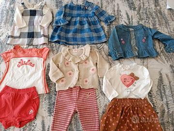 2 vestitini, 3 completi ed 1 giubbino jeans bimba 9 mesi, ottimo stato
