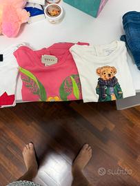 Vendo come da foto jesns e tshirt Gucci, Dsquared, Polo Ralph Lauren e Kenzo Un paio di jeans e tshirt Kenzo taglia 3anni tutto il resto taglia 9mesi Tutto tenuto benissimo come nuovo e indossato pochissime volte (i jeans forse 2 volte) Tutto originale al 100% Non spedisco consegno solo a mano