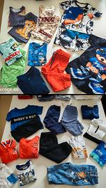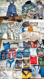 Pezzi totali 131 Body canottiera 2 Body maniche corte 8 Body maniche lunghe 1 Maglie maniche corte 26 Maglie maniche lunghe-felpe 34 Pantaloncini 23 Pantaloni tuta 11 Jeans 7 Pigiama 1 Pigiama intero 2 Salopette 3 Giacca jeans 1 Costume carnevale 1 Lenzuola 4 Copertine 3 Accapatoio 1 Berretti 3