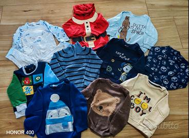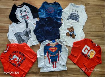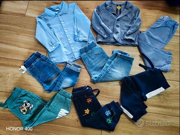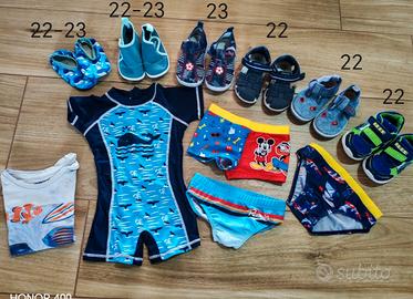 3 costumi mutanda 1 costume intero 1 paio di scarpe con lucine n 22 (leggermente rovinate come da foto) 2 paia di sandali n 22 1 paio di sandali n 23 1 maglia maniche corte 2 jeans 3 pantaloni tuta 1 pantaloni eleganti 1 camicia 1 giacchetta elegante 8 felpe - maglioncini 1 maglia Natale 1 Pigiama intero 9 maglie maniche lunghe 4 giacche (tra cui 1 k-way) 2 berretti 1 sciarpa 1 scaldacollo