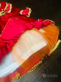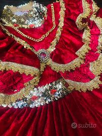 Tessuto in velluto maniche lunghe con balze Ampia gonna con balze e passamaneria oro