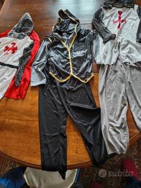 Tre vestiti di carnevale o per travestimenti e giochi di ruolo: due vestiti da soldato templare (uno con elmo di maglia "ferrata" separata, uno con elmo di maglia e mantello rosso), il terzo da guerriero Ninja.