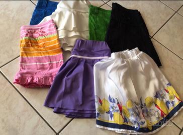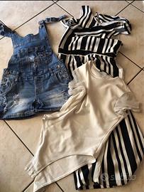 Lotto di vestiti composto da: - 8 maglie mezza manica (1 Benetton, 2 Original Marines) - 9 pantaloncini corti e jeans corti (1 Stradivarius) - 10 maglie con spalline e spalla larga ( 1 Champions) - 7 gonne ( 2 Original Marines, 1 gonna pantalone) - 14 vestiti (1 Benetton, 1 Angel Devil, 1 Lui-jo e 1 Coconuda) - 1 salopette - 1 tuta elegante - 1 body REGALO: - 3 costumi da bagno (1 intero Arena) - 2 mutande nuove