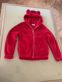 Felpa fucsia, con orecchie sul cappuccio, con tasche davanti e zip