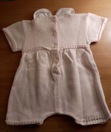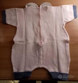 Set di tre tutine per neonata in morbido tessuto rosa, perfette per i primi mesi.