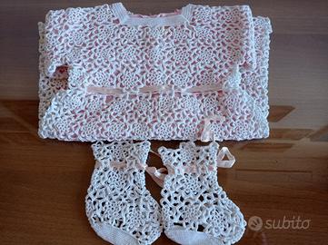 vendo vestito battesimo fatto a mano con fodera rosa, lunghezza 37 cm. Condizioni come nuovo
