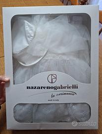 Bellissimo vestitino per bimba utile da utilizzare per battesimo/cerimonia. Taglia 3/6 mesi, marca Nazareno Gabrielli, completa il tutto un bellissimo cappellino in abbinata al vestito, inoltre incluso diamo anche delle calzettine. Il tutto ancora con etichetta originale, MAI utilizzato. Vendo per via di acquisto errato.