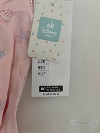 Vestitino bimba Disney Ariel Taglia 12 mesi 80 cm Nuovo con cartellino