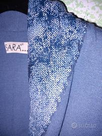 Vestitino premaman colore carta da zucchero, elegante con spalline e voulant, completo di coprispalle a maniche lunghe e colletto di paiettes.