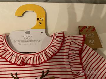 Simpatico cestitino per bambina con visino renna e gonnellina rossa con puntini dorati molto luminoso e simpatico