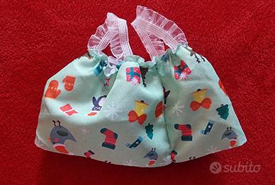 Splendido vestitino artigianale per Labubu e bambole di dimensioni simili (es. 20cm). Colore: Verde menta con stampa vivace. Design: Pizzo arricciato su cinghie e orlo, motivi con pinguino, uccellino, fiori e cuori. Materiale: Tessuto di alta qualità. Adatto per: Aggiungere un tocco di colore e allegria alla tua collezione.