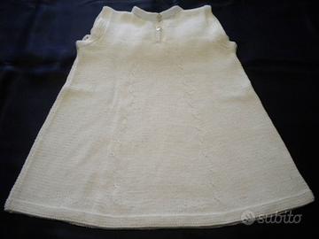 Vestitino smanicato fatto a mano all’uncinetto e ai ferri in cotone bianco.