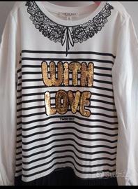 Bellissimo vestitino originale Twin Set usato un'unica volta x cerimonia, panna e nero con pajettes dorate davanti. Splendido!