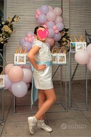 Vendo abito da prima comunione come nuovo, con gonnellone che si stacca come si vede dalle foto trasformandosi in bel tubino corto.