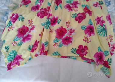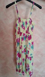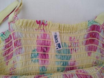 Vestito abito prendisole in viscosa giallo a fiori bambina ragazza 11 12 anni marca Idexè Bellissimo vestitino abitino da ragazza taglia 11 12 anni, colore giallo con fiori fucsia, 100% viscosa, capo molto fresco. La parte superiore ha due spalline regolabile, corpetto a nido d’ape, la parte della gonna scende in modo molto morbido e termina con bordo asimmetrico. Il vestito è stato usato pochissime volte, pari al nuovo.