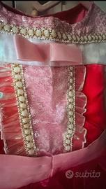 Bellissimo vestito di carnevale ispirato ad Aurora. - Colore fucsia brillante. - Dettagli in paillettes e nastri. - Gonna ampia e vaporosa in tulle.