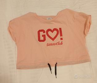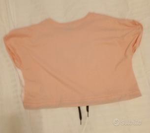 Vendo vestito con maglietta per bambina. Vestito a righe bianche e nere, maglietta rosa con scritta come da foto. Taglia 11-12 anni