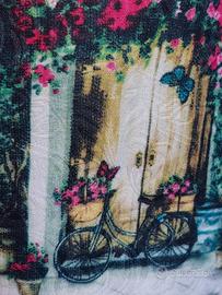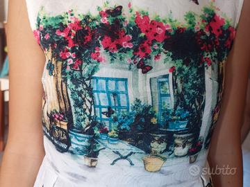 vendo vestito bambina con tessuto lavorato. decorazioni con farfalle e paesaggio taglia 11/12anni