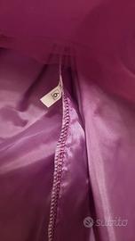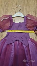 Vestito per bambina con gonna in tulle e maniche a sbuffo. - Colore viola. - Tessuto a costine sul corpetto. - Maniche trasparenti. - Gonna a più strati.