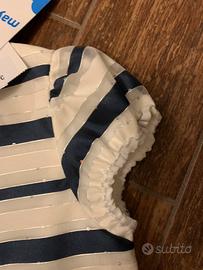 Vestito da bambina marca Mayoral taglia 9 anni, (veste piccolo) fatto in tulle con brillantini di perline, righe bianche e blu