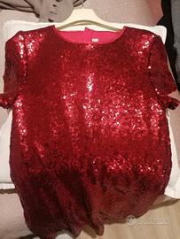 Elegante vestito bambina Micheal Kors in viscosa ricoperta di micro paillettes rosse.