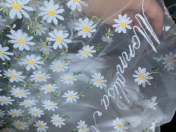 Vestitino bimba marca "Monnalisa" tessuto cotone e sopra velo ricamato margherite. Taglia circa 4/6 anni