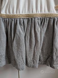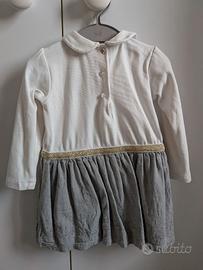 Vestito bimba 15 mesi bianco e griglio con dettagli oro, in cotone, brand Chicco. Indossato una sola volta