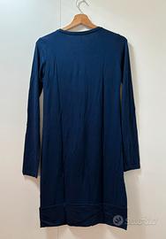 Vendo vestito a maniche lunghe firmato Guess in color blu notte. Il capo è decorato da borchie dorate e argentate che formano la scritta "LOVE GUESS" con motivi a stelle, lune e cuori. Tessuto molto morbido ed elasticizzato. La taglia è 16 anni (Altezza 170 cm), ma grazie al taglio aderente veste perfettamente anche una taglia XS da donna.