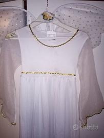 Bellissimo vestitino da angelo, completo di ali, in buonissime condizioni. Il vestito e' adatto per le feste al chiuso in quanto leggero. Taglia 110-120 cm, per bambine da 5 a 7 anni. Acquistato e venduto senza la bacchetta stellata. Visione e prova in provincia di Trieste.