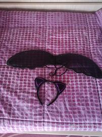 Vestito per bimba 7/9 anni 130 cm. Colore nero e viola, con ali e cerchietto con corna