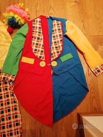 Vestito carnevale clown monello, taglia 10/12 anni (da spalla a terra 135 cm), usato due volte, completo di parrucca.