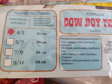 Vestito cowboy da bambino Taglia 4/5 anni, da spalla a terra 80 cm Completo di tutto ciò che è indicato in foto. Come nuovo
