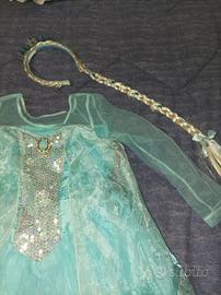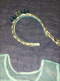Bellissimo e nuovissimo vestito carnevale di Elsa, usato solo un pomeriggio. Compreso di cerchietto fermacapelli con lunga treccia. Misura 122-128, 6-8 anni.
