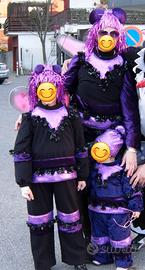 Vestito fatto a mano, composto da pantaloni con elastico e camiciotto con cerniera sulla schiena. Stoffa pile nero morbido. Inserti fucsia lilla e neri. Cerchietto con occhi ed antenne Ali da indossare tipo "zainetto" Lungh. camiciotto 54 cm Lungh. tot pantaloni 76 cm.