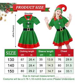 Vestito carnevale o natale elfa bambina taglia 130cm, portato una volta, in pile, unico difetto: manca un pompon bianco ad un copri scarpe come da seconda foto.
