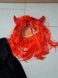mantello da vampiro con frontino e parrucca rossa TG. 7/8 anni