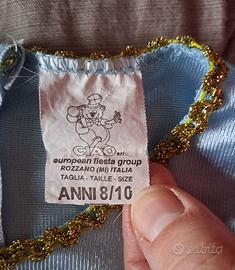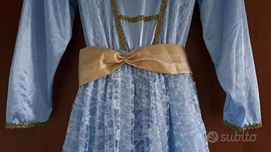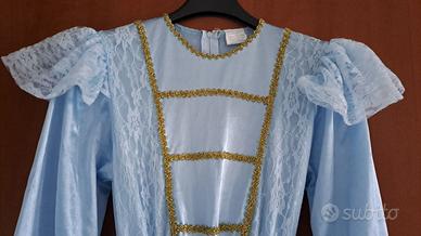 Vestito da carnevale da principessa, tipo Cenerentola, colore azzurro con decorazioni oro, marca Ciao. Taglia 8/10 anni. Buone condizioni: piccole imperfezioni come da foto. Verrà inviato lavato.