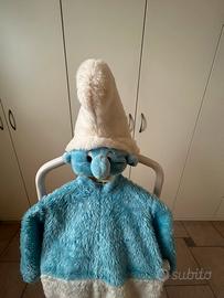 Vestito Carnevale “Puffo” Giochi Preziosi”Misure: Dalla spalla fine vestito 80cm Maniche 32 cm il polsini hanno elastico.larghezza 40 cm ,dal cavallo al collo 45cm.