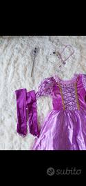 vestito Rapunzel (taglia 140cm) con accessori,solo un pezzettino di tulle in fondo danneggiato