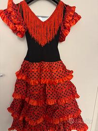 Vestito bambina da spagnola in ottime condizioni. La parte del busto é in tessuto elasticizzato. Altezza dalla spalla 87cm adatto per bambine dai 7 ai 10 anni circa.