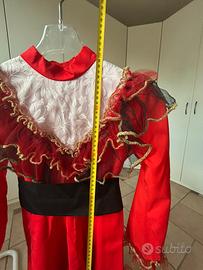 Vestito Crnevale “Spagnola” con piuma in testa fascia nera in vita .Lavato.